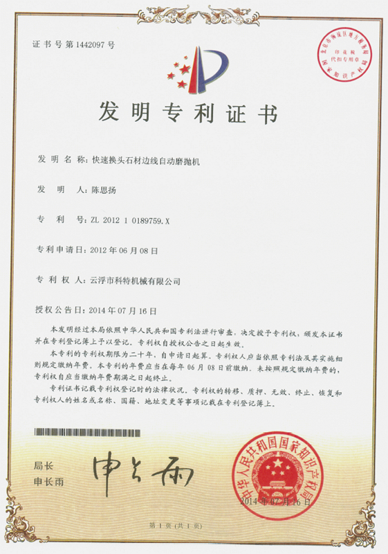 云浮市科特機械有限公司位于廣東省云浮市都楊高新區、佛山(云浮)產業轉移工業園,占地面積40000多平方米,是一家專業生產石材機械裝備的高新技術企業。